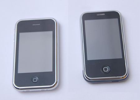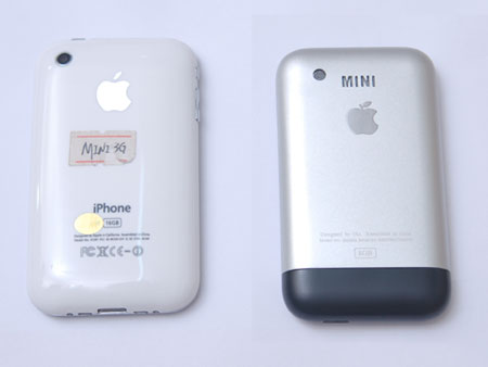 New iPhone 3D images used by accessories companies are floating around in China. We will post the images in a day or so. In the meantime here are some photos we got today. The one on the left could be a real iPhone but the one on the right (MINI) must be a fake. iPhone news will get a lot hotter as we get closer to June.