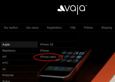 Vaja a major iPhone case designer has added an "iPhone Nano" listing to their website.